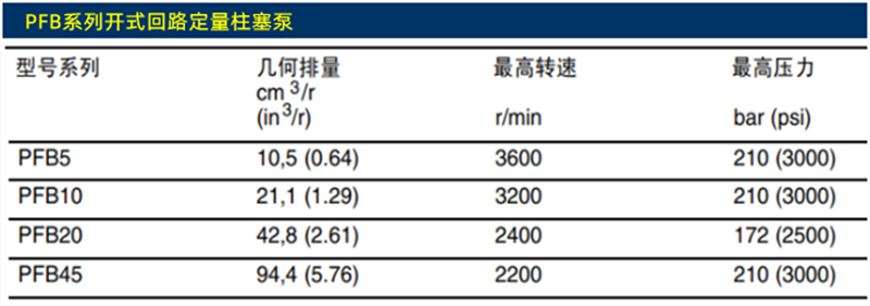 威格士柱塞泵PFB系列威格士定量柱塞泵技術參數: