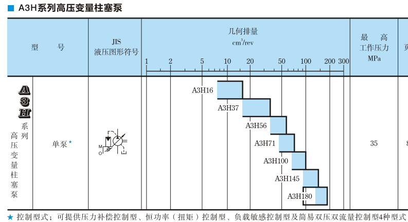 排量范圍:16.3至180.7 cm3/rev(0.995至11.03 cu.in./rev),具體取決于不同型號