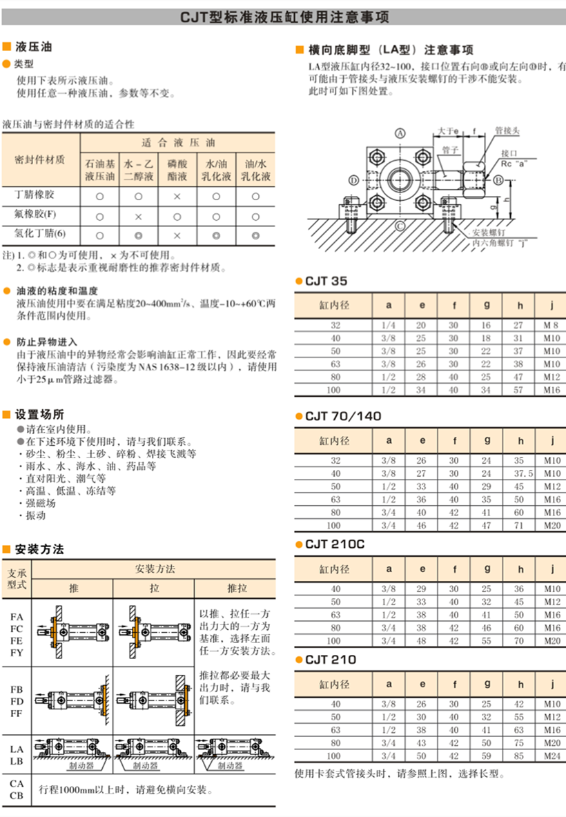 油研CJT型標準液壓缸規格:
