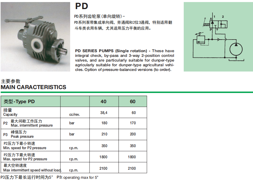 Ronzio PD 系列泵特別適用于農用卡車應用,并配備截止閥、旁通、3 路 2 位分配器。此外,它也可用于平衡板。