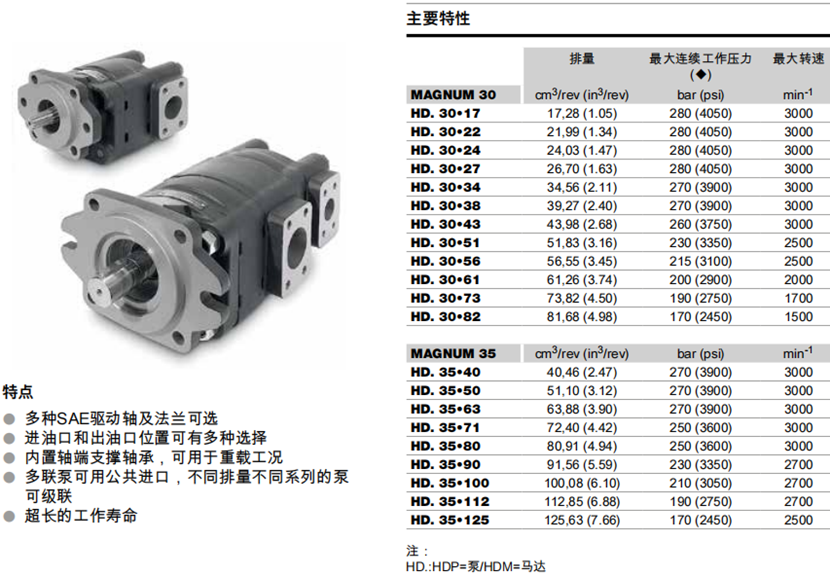 排量范圍:從17,28 cm3/rev (1.05 in3/rev) 到125,63 cm3/rev (7.66 in3/rev);分30, 35兩個規格。