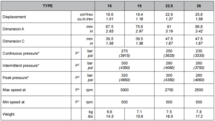 SALAMI齒輪泵的排量為16 cm3/轉速至26 cm3/轉速(從1.01立方英寸/轉至1.58立方英寸/轉)。
