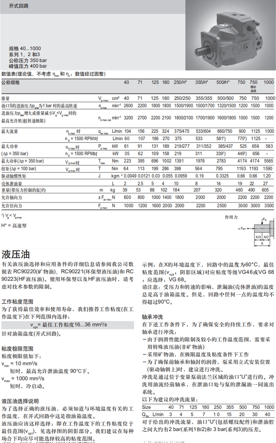 - 力士樂柱塞泵A4VSO液壓油的選用和注意事項